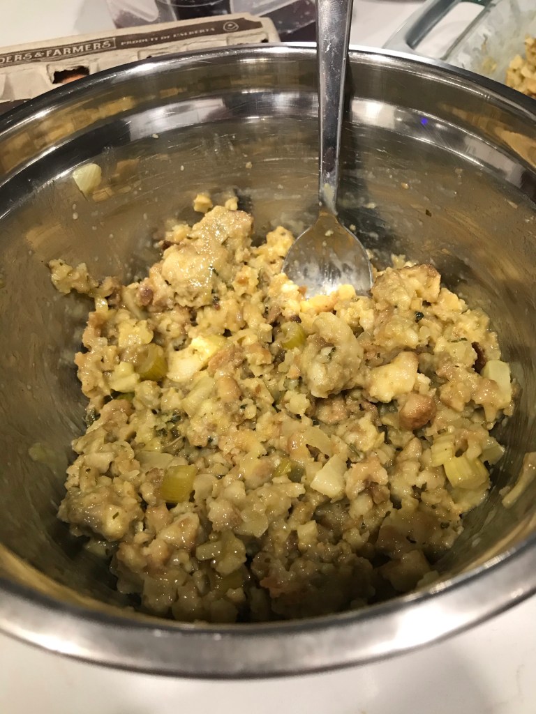 - Mix stuffing and eggs together
